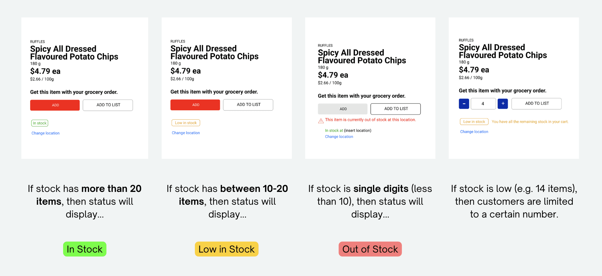 Customer interface: Real-time stock indicators help customers understand item availability and anticipate potential out-of-stock changes.